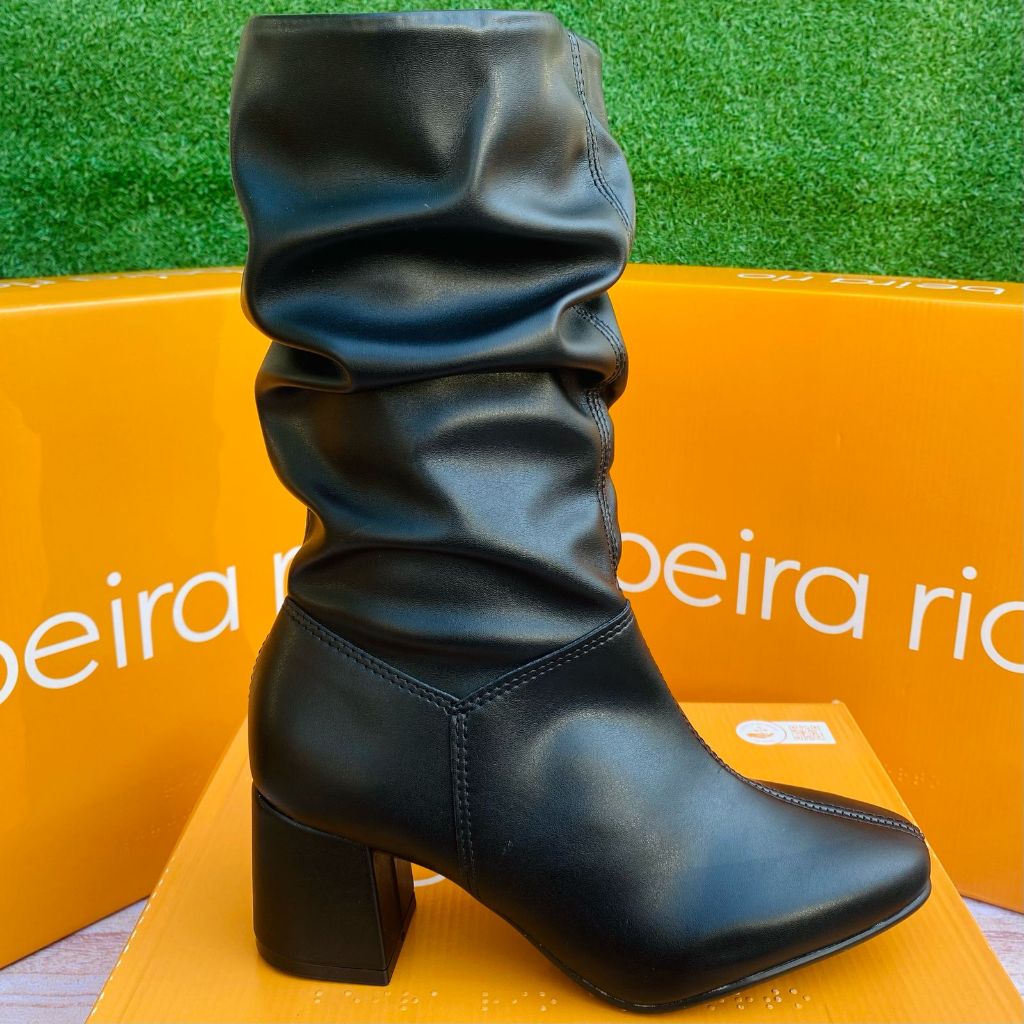 Bota Cano Alto Beira Rio Liso Feminino Casual Confortável Inverno Acolchoada