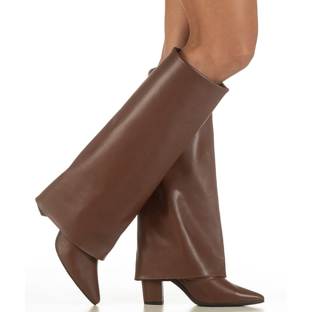 FORMA PADRÃO. Na maioria dos casos, indicamos o número que você já usa normalmente. Por ser um modelo de bico fino, se você prefere um calce mais confortável ou tem o pé mais largo, sugerimos optar por uma numeração maior. Material Externo - Napa Sintética Material Interno - Material Têxtil com espuma. Altura do salto - 7,5 cm Salto: Bloco. Modelo: Cano Longo estilo Capa/Manta. Fechamento: Zíper na lateral interna Palmilha - Espuma Confortável com aplique da logo. Material da Sola - Micro Expandido - Leve e Flexível. - PROTEÇÃO DO ENVIO: Caixa individual - Embalada com Envelope Plástico Resistente. - FOTO: real do nosso produto. A Bota Capry é elegância em movimento. Seu cano longo com design estilo capa cria um efeito sofisticado e contemporâneo, trazendo uma construção diferenciada que transforma o visual instantaneamente. A manta fixa em napa sobreposta ao cano adiciona profundidade, estrutura e um toque de moda autoral: é o tipo de detalhe que chama atenção pelo seu design. O bico fino alongado valoriza a silhueta e alonga as pernas, enquanto o salto bloco de 7,5 cm entrega presença com estabilidade e conforto. O zíper na lateral interna facilita o calce e garante praticidade no dia a dia, equilibrando estética e funcionalidade. A Capry é a escolha ideal para quem deseja um visual marcante sem abrir mão do conforto. Transita com elegância entre eventos sociais, produções noturnas e até combinações mais casuais com informação de moda. Ela não passa despercebida. Ela impõe estilo. Dica GiGiL: Combine com vestidos midi ajustados, saias ou peças mais estruturadas para destacar o efeito capa. A bota Capry funciona como peça principal do look, deixe que ela conduza a produção. CONSERVAÇÃO: * Para conservar o seu modelo novo e bonito por muito mais tempo é fundamental seguir algumas recomendações: - A limpeza deve ser feita com sabão neutro e pano úmido e não deve ficar de molho. Não usar nenhuma fonte de calor para secar. Guardar em local sem umidade e deixar descansar na sombra por 12 horas após o uso. - Não utilize Máquina de lavar e secar. - Independente do material do seu sapato, não esfregue com força ou passe esponjas grossas. - Caso alguma dessas indicações não forem cumpridas, isso poderá danificar os materiais, a cor e a textura do seu calçado. GiGiL - SEU ESTILO COM UM CLIQUE! Somos uma marca de moda, criativa e antenada. Nosso foco é criar calçados com qualidade e preço justo. Superar suas expectativas e oferecer praticidade de compra são nossos objetivos.