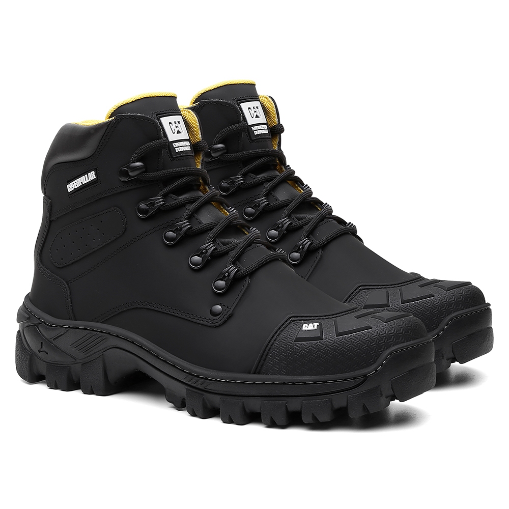 Bota Caterpillar 100% Couro Nobre Bico PVC Casual Trabalho Resistente + Palmilha em Gel