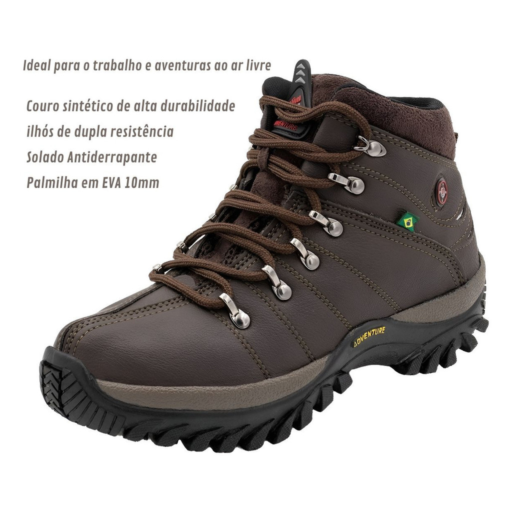 Bota Coturno Adventure Trabalho Trilha Antiderrapante Infantil ao Adulto Unisex