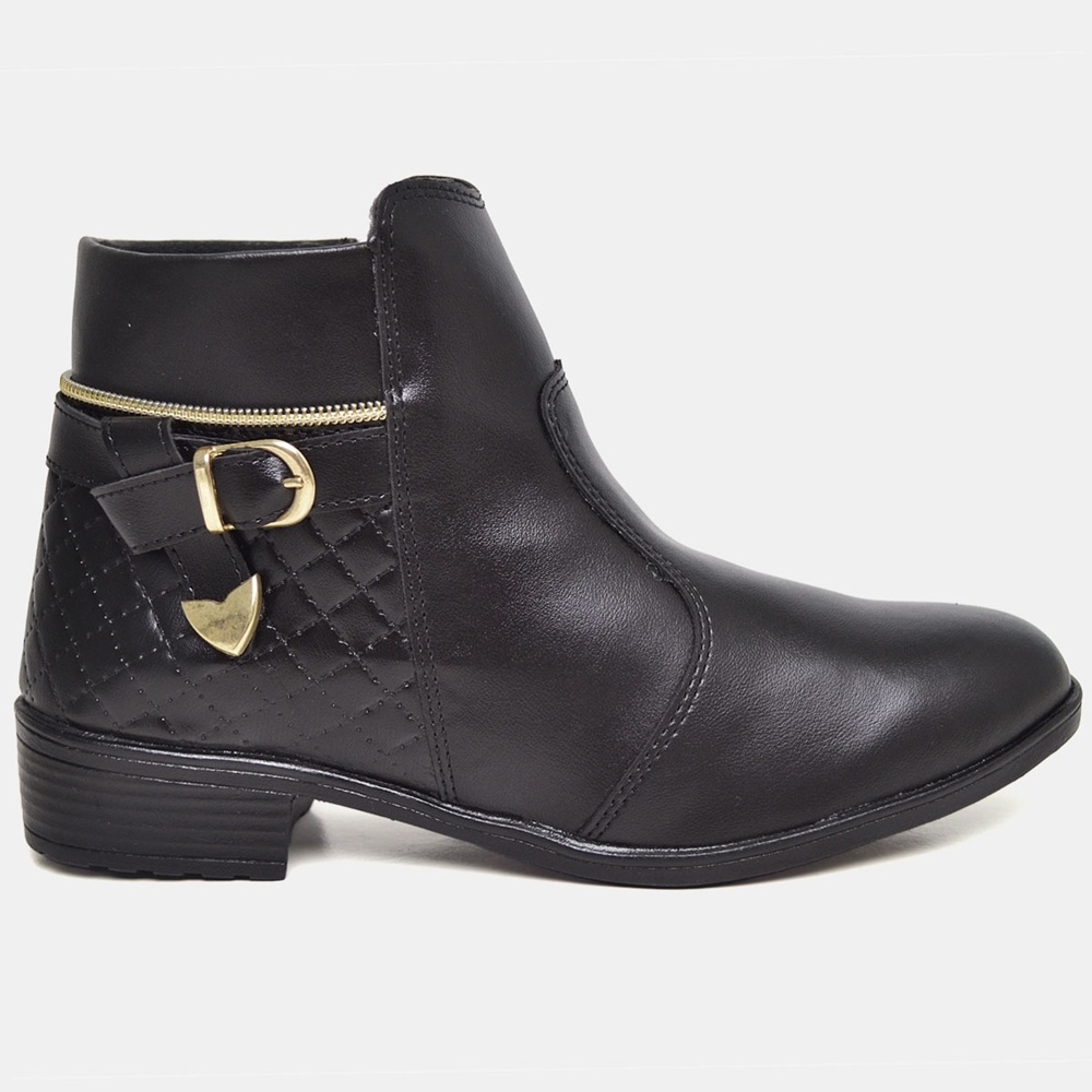 Bota queridinha da nossa coleção, além de linda e fofa é meiga estilosa... Uma pegada bem it Girl, para formar vários looks! Seus detalhes fazem toda diferença, seus recortes dão um charme a mais! Se você gosta de ousar, esse estilo ficaria lindo com um vestido florido bem levinhos...Aposte! NUMERAÇÃO: 33 ao 40 MODELO: Bota COR: Preto (2 cores disponíveis) MATERIAL: Sintético SOLADO: Borracha, MATERIAL INTERNO: Têxtil Espumado ESTILO PEÇA: Lisa PALMILHA: EVA ALTURA CANO: Curto ALTURA SALTO: 2,5cm FECHAMENTO: Zíper "Receba sua compra no conforto da sua casa, comodidade e praticidade na hora de fazer compras" Tire todas suas dúvidas no Chat..