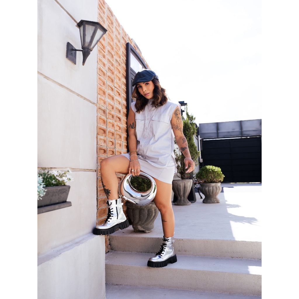 Com design e solado exclusivo fashionista DUBUY o coturno LOLLA possui solado tratorado mais alto e robusto com linhas verticais se destacando e dando um ar mais moderno para os seus looks! A bota estilo coturno possui cabedal em material sintético. Apresenta solado emborrachado com sola tratorada, que garante durabilidade, praticidade e conforto. Solado reforçado com costura lateral e com puxador traseiro para facilitar calce, cano médio e fechamento por amarração e zíper lateral. Super estilosa e moderna, é ideal para dar um toque ainda mais fashion aos seus looks! Cuidados para produtos metalizados: ° Evite produtos químicos agressivos e use produtos de limpeza suaves. ° Armazenar em local seco e longe da luz direta para preservar o brilho. ° Limpeza delicada: use pano macio e água morna, secando bem depois. ° Evite o contato com suor e óleos para evitar manchas. ° Proteja contra arranhões: evite superfícies ásperas ou pontiagudas. ° Evite temperaturas extremas para preservar a camada metalizada. ° Faça manutenção regular para manter o brilho e a durabilidade. NUMERAÇÃO: 33 ao 40 MODELO: LOLLA COR: Prata MATERIAL: Sintético SOLADO: Microexpandido MATERIAL INTERNO: Têxtil ESTILO PEÇA: Lisa PALMILHA: EVA ALTURA CANO: 18 cm ALTURA SALTO: 4,2 cm FECHAMENTO: Ziper e Cadarço SEMPRE RECOMENDAMOS SUA NUMERAÇÃO NORMAL POIS A FORMA É PADRÃO. CASO RESOLVA FAZER A MEDIDA FAÇA COM O PÉ TOTALMENTE APOIADO NO CHÃO. "Receba sua compra no conforto da sua casa, comodidade e praticidade na hora de fazer compras " Tire todas suas dúvidas no campo de perguntas...