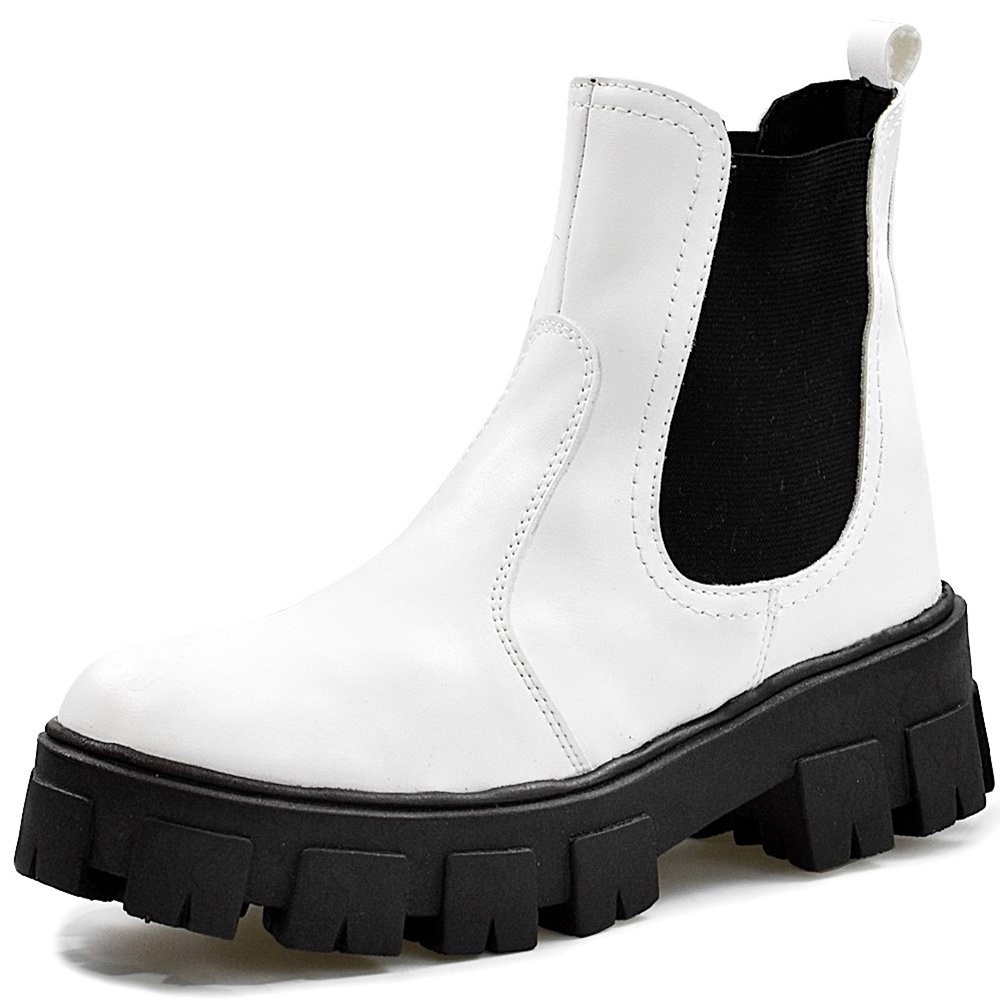 Bota Coturno Dubuy Feminina Tratorada Chelsea Branco Sola Preta Drop 1504FG