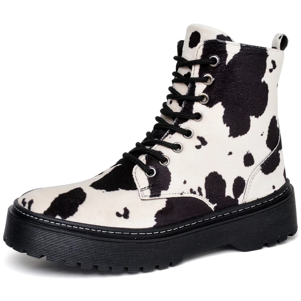 Bota Coturno Dubuy Tratorada Feminina Estampa Cow Preto Domo 1105FG