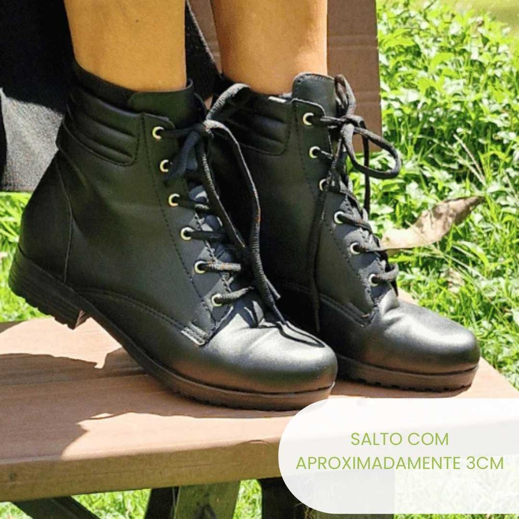 Bota Coturno Feminina Agatha Original Cano Curto Confortavel Salto Baixo Com Cadarço
