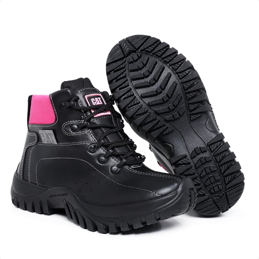 Bota Coturno Feminina CAT Adventure De Couro Resistente Com Solado Costurado Impermeável Barato