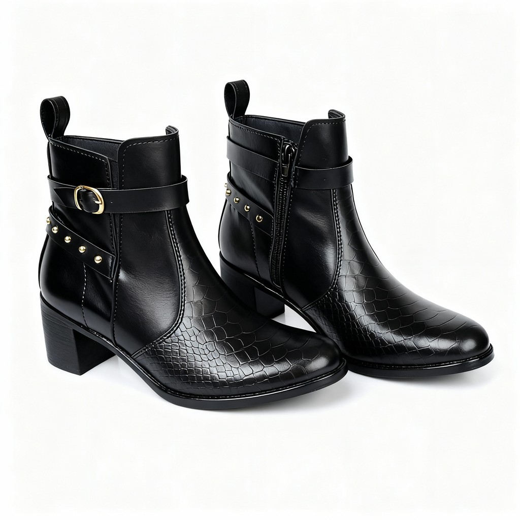 Bota Coturno Feminino Escamada com Salto Médio Fivela Linda Confortável