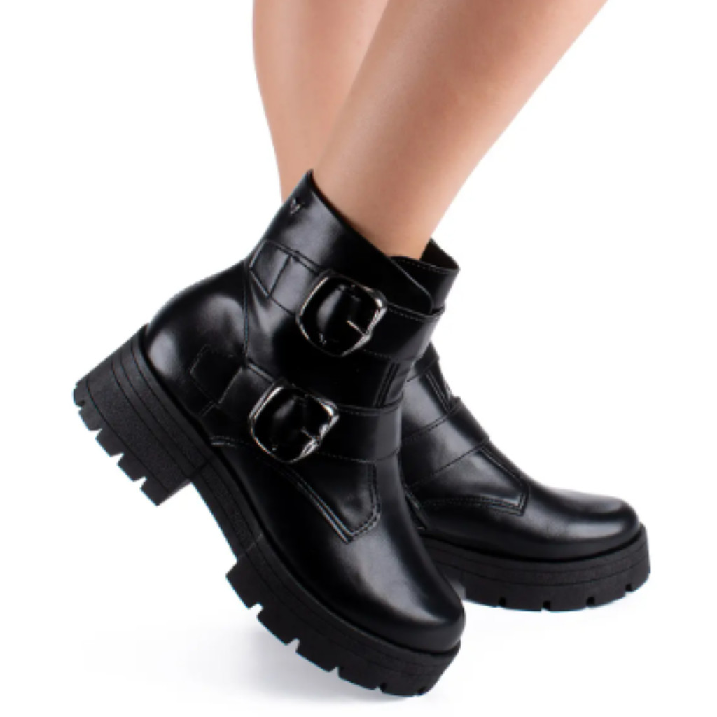 Bota Coturno Feminino Mississipi Preto Fivelas Solado Tratorado Design Moderno