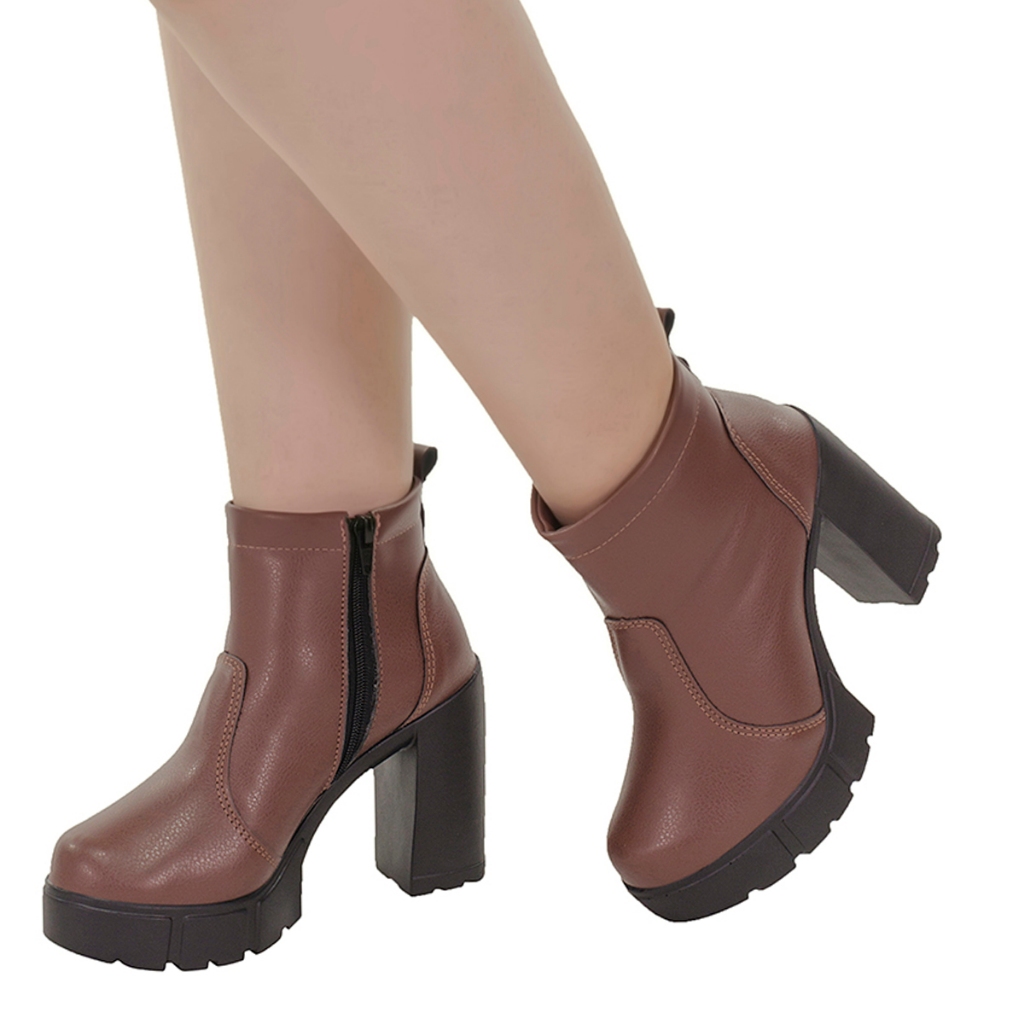 Bota Coturno Feminino Salto Alto Grosso Tratorada Cano Curto