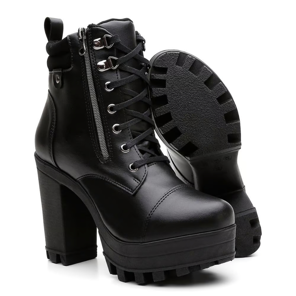 | Bota Coturno Feminino Tratorado Salto Alto Grosso Moda Fechamento Z... este produto | R$ 149,89 | 40% | 4.9/5 | 125 |