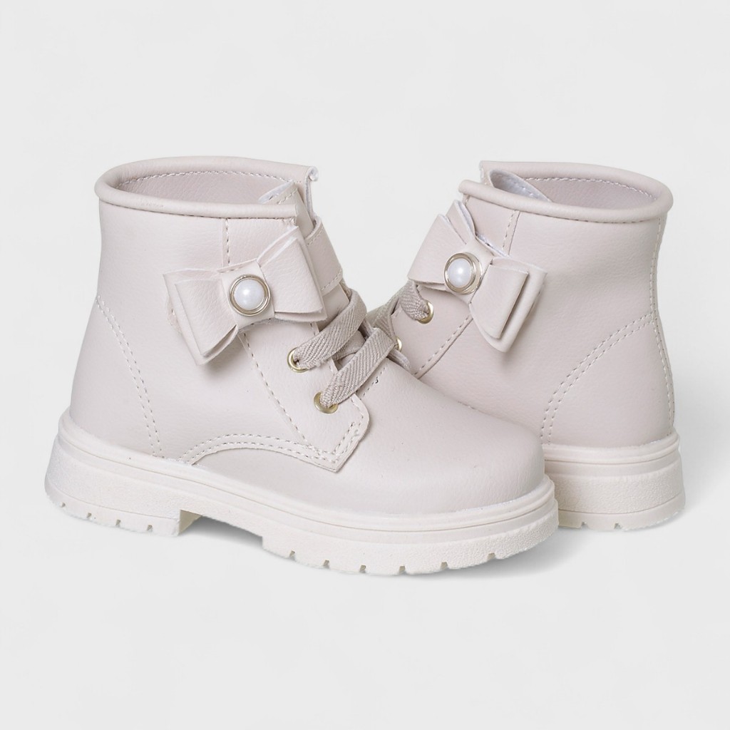 TABELA DE MEDIDAS N° 22 - 15 cm N° 23 - 15,5 cm N° 24 - 16,2 cm N° 25 - 16,5 cm N° 26 - 17,5 cm N° 27 - 18,5 cm DESCRIÇÃO Deixe os pezinhos cheios de atitude com a Bota Coturno Infantil Off White com enfeite de laço. Com um design moderno e cheio de personalidade, essa bota é perfeita para compor looks estilosos e confortáveis. DESTAQUES - Material: Couro sintético - Cordões de elástico e fecho de contato facilitando o calce - Solado Antiderrapante: Oferece estabilidade para os pequenos exploradores. - Numeração: Disponível nos tamanhos 22 ao 27 - Ideal para diversas graças, essa bota combina com vestidos, calças, shorts e muito mais. Perfeita para crianças cheias de estilo!