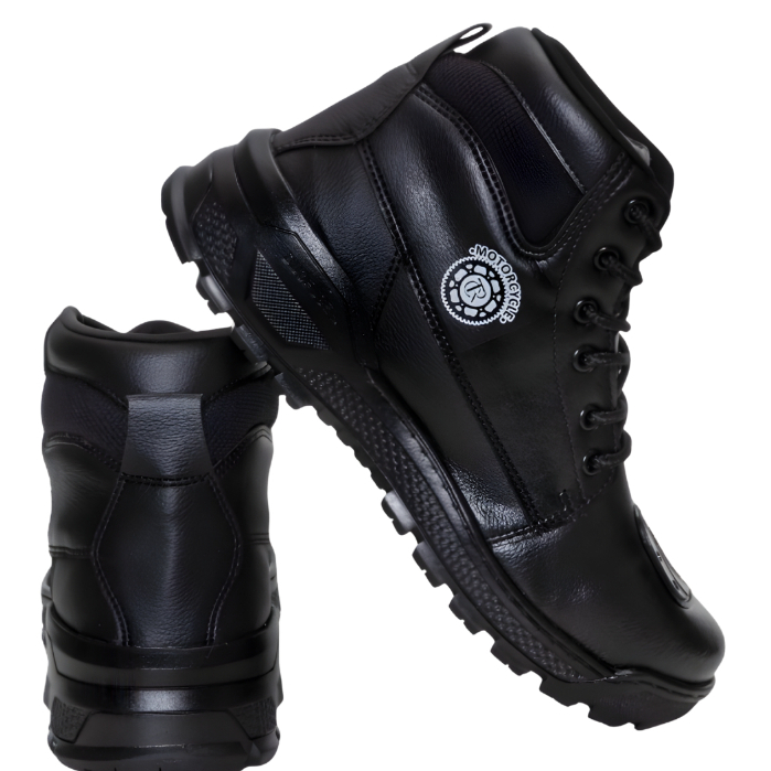 Bota Coturno Motoqueiro em Couro com Biqueira de Proteção