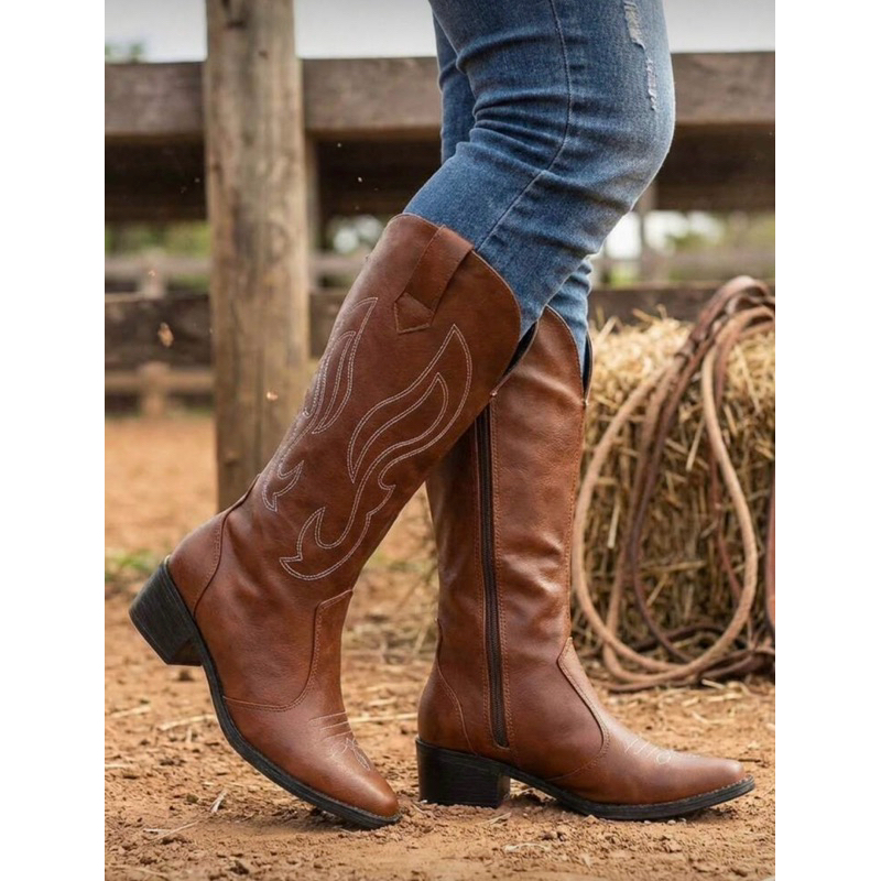 Bota Country Boiadeira Feminina Texana Cano Alto Bordado