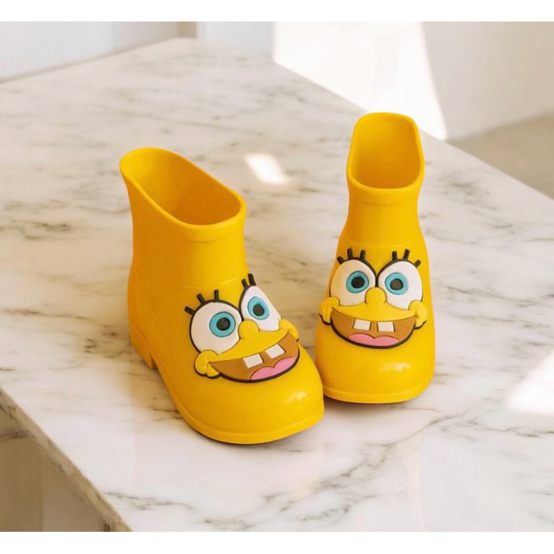 Bota de Chuva Galocha Menino e Menina Bob Amarelo Leve Antiderrapante Impermeável Esponja Confortável