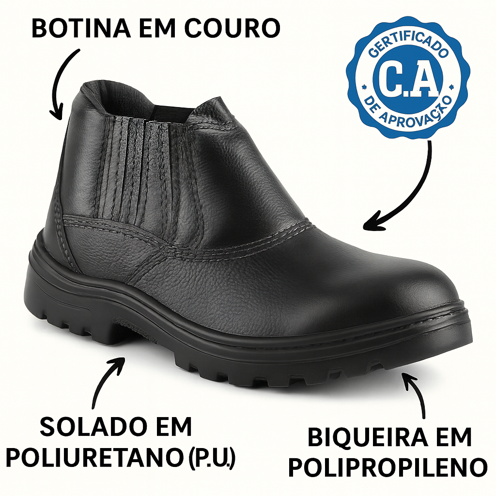 🛡️ Botina de Segurança em Couro Preto – Conforto e Proteção para o Trabalho A botina de segurança é ideal para profissionais que precisam de proteção, conforto e durabilidade no dia a dia. Fabricada em couro legítimo, oferece resistência superior e excelente acabamento, sendo perfeita para construção civil, indústria, serviços gerais e trabalho pesado. ✅ Benefícios ✔ Couro legítimo resistente ✔ Solado antiderrapante e tratorado ✔ Bico reforçado para maior proteção ✔ Confortável para uso prolongado ✔ Alta durabilidade mesmo em trabalho pesado 🔧 Indicações de uso • Construção civil • Indústrias • Serviços gerais • Mecânica e manutenção • Logística e armazéns • Trabalho rural 📌 Especificações Material: Couro legítimo Cor: Preto Solado: Borracha/PU antiderrapante Modelo: Cano curto Gênero: Masculino Categoria: EPI – Equipamento de Proteção Individual 👉 Segurança, conforto e resistência em um único calçado!
