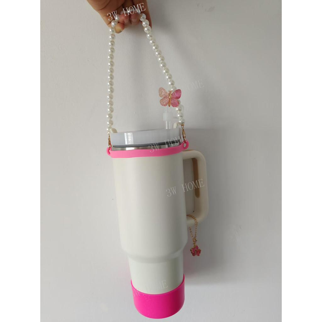Bota de silicone com glitter para copo de 30 onças/40 onças com alça de corrente de garrafa de água alça de palha borbol