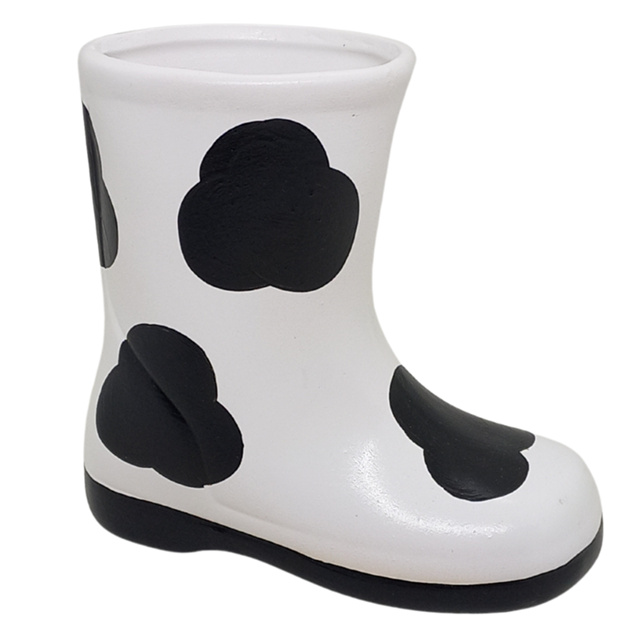 Bota Decorativa Botinha Caipira Com Mancha De Vaca Ceramica