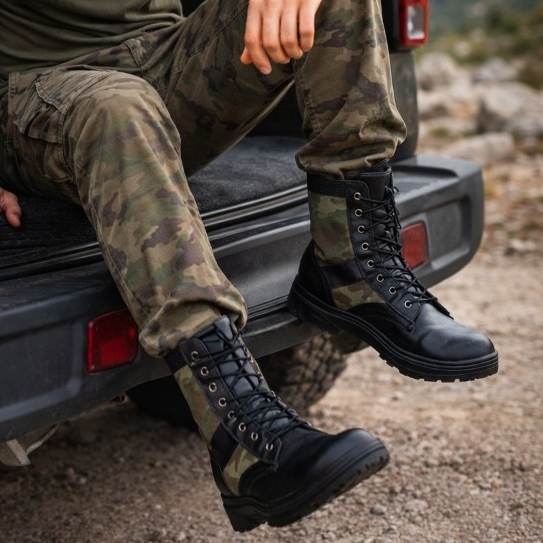 Bota Exercito Camuflada Coturno Couro Militar Masculina para Motociclista Estilo e Durabilidade