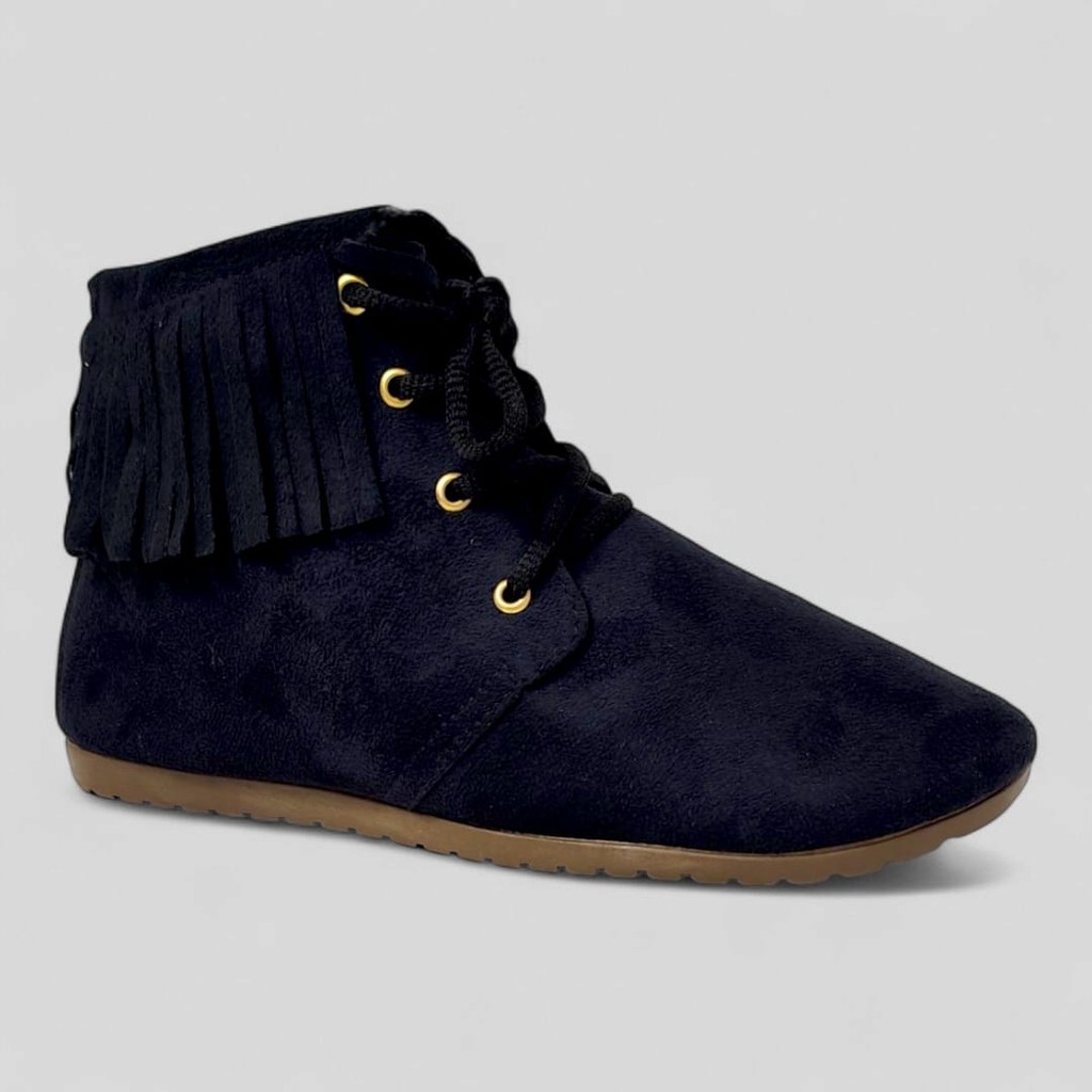 Bota Feminina Cano Curto Franja Confortável Casual Coturno