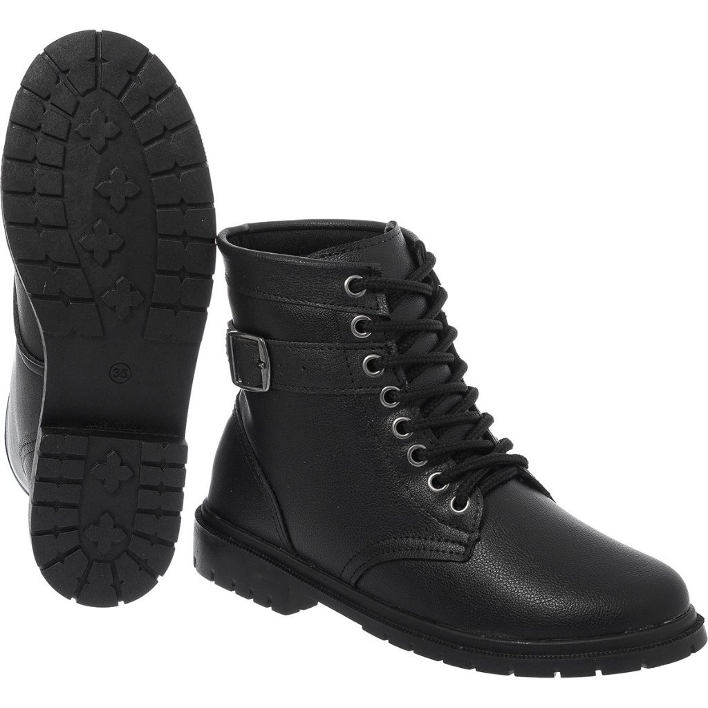 Bota Feminina Coturno Cano Curto Solado Tratorado Confortável Fivela Elagante Casual Dendera