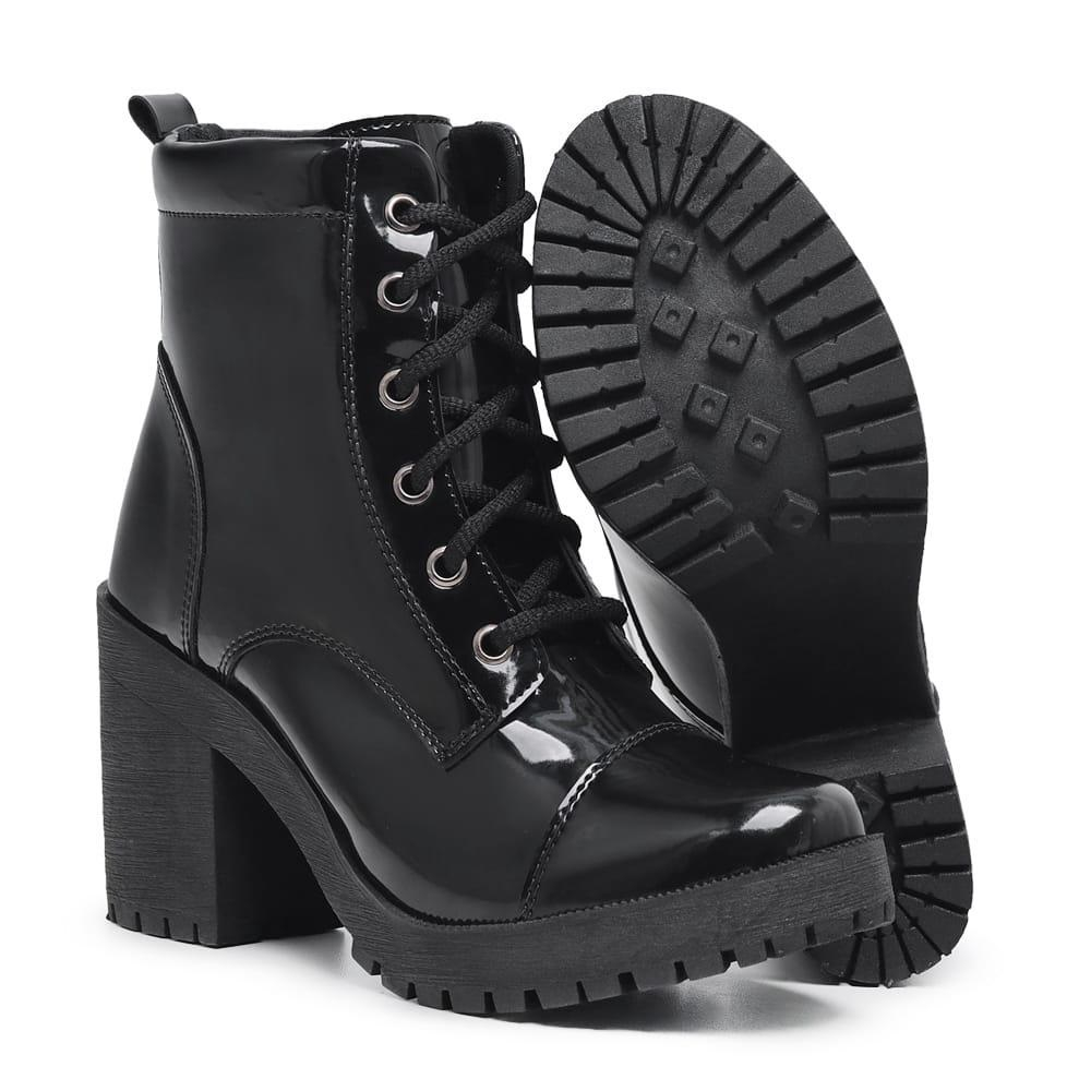 Bota Feminina Coturno Preto Tratorado Salto Confortável Falcucci
