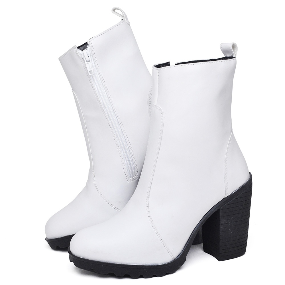 Bota Feminina Dubuy Salto Grosso Cano Medio Branco Kate 1008FG