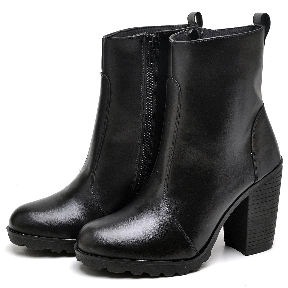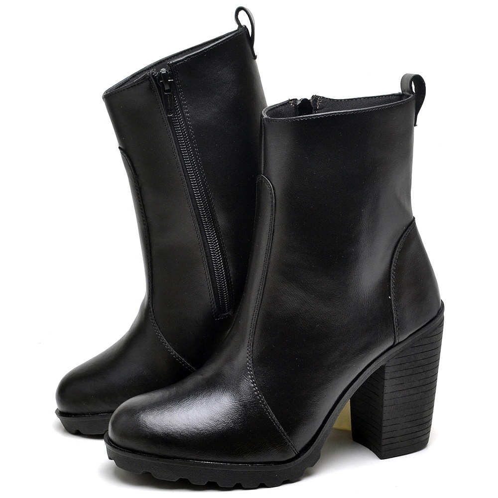 Bota Feminina Dubuy Salto Grosso Cano Medio Preto Fosco Kate 1008FG
