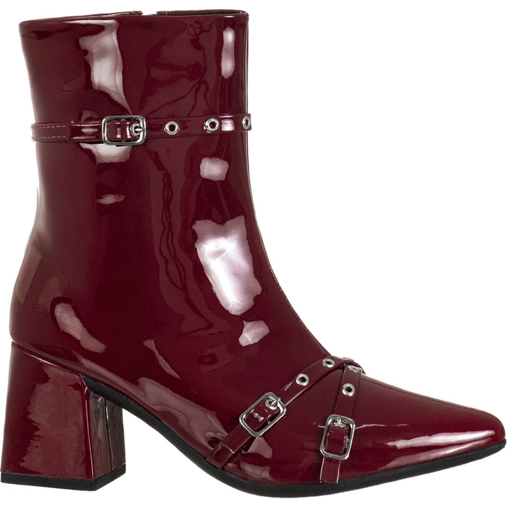 CALÇA O NÚMERO EXATO. Bota Salto Bloco Médio, Bico Fino. Material Externo - Napa Sintética e Verniz Detalhe Cano - Tiras com fivelas e ilhós em metal. Forro - Cacharrel (tecido) Com espuma. Material Interno - Material Têxtil Confortável. Salto: fachetado (encapado) Solado - Microgel Altura da Sola – 7 cm Altura do Cano – 18 cm Palmilha - Confortável, com espuma e com aplique da logo. Com uma proposta cheia de personalidade e glamour essa bota se destaca pela aplicação de metais e fivelas que a enfeitam por completo! Elegante com seu bico fino e salto bloco. Sempre acompanhando as Tendências. Esteja certa que você vai adquirir um calçado para proporcionar conforto em todos os seus momentos. Para você que não abre mão de calçados estilosos, confortáveis e de muita qualidade! DICA: Além de ser uma opção atemporal, a bota bico fino ainda é uma ótima escolha para quem quer alongar as pernas, efeito causado pelo bico fino, afina e alonga a silhueta !!! CONSERVAÇÃO: * Para conservar o seu modelo novo e bonito por muito mais tempo é fundamental seguir algumas recomendações: - A limpeza deve ser feita com sabão neutro e pano úmido e não deve ficar de molho. Não usar nenhuma fonte de calor para secar. Guardar em local sem umidade e deixar descansar na sombra por 12 horas após o uso. - Não utilize Máquina de lavar e secar. - Independente do material do seu sapato, não esfregue com força ou passe esponjas grossas. - Caso alguma dessas indicações não forem cumpridas, isso poderá danificar os materiais, a cor e a textura do seu calçado. GiGiL - SEU ESTILO COM UM CLIQUE! Somos uma marca de moda, criativa e antenada. Nosso foco é criar calçados com qualidade e preço justo. Superar suas expectativas e oferecer praticidade de compra são nossos objetivos.39