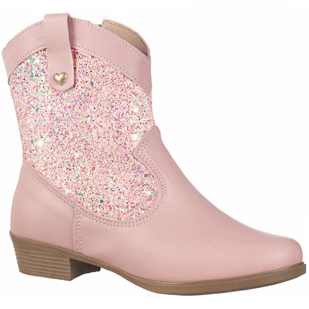Bota Feminina GiGiL Teen Texana Country Infantil Saltinho Baixo Médio Cano Curto Confortável Moda Glitter Brilhante