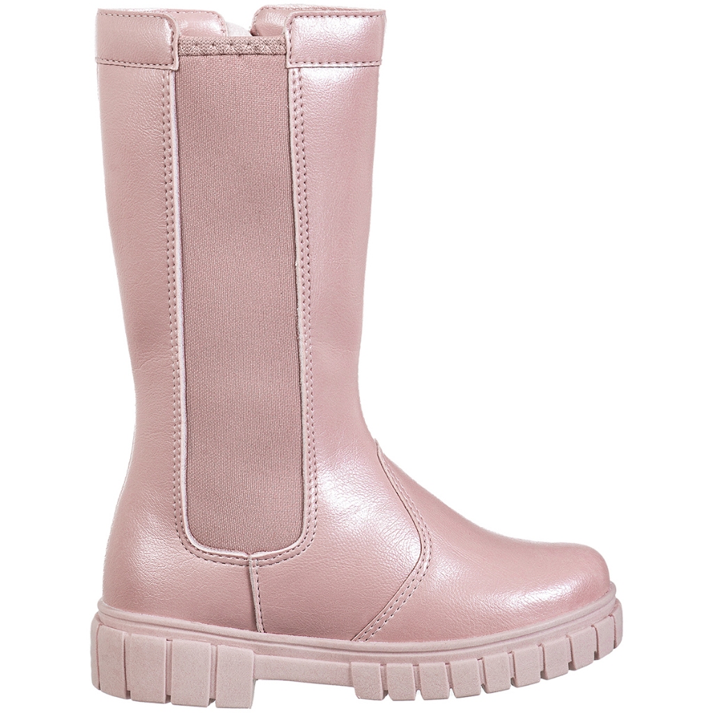 Bota Feminina Infantil GiGiL Teen Elástico Tratorada Rasteira Bico Redondo Cano Longo Confortável Elegante Casual Moda