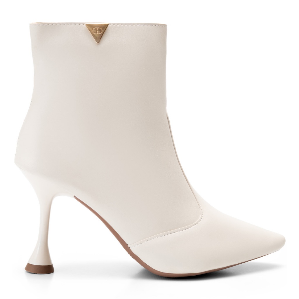 Bota Feminina Lumiss Bico Fino Salto Alto Fino Cano Curto Off White
