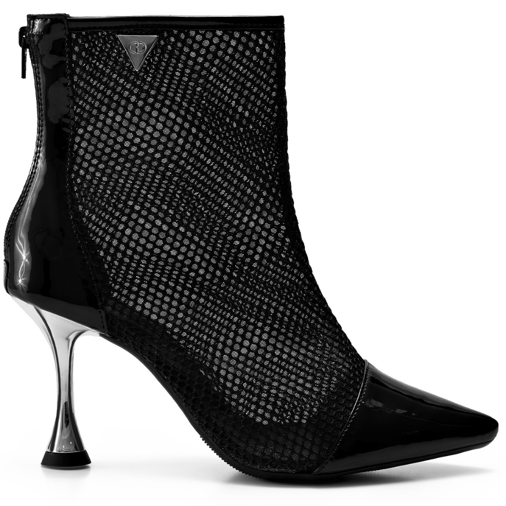 Bota Feminina Lumiss Cano Curto Salto Alto Fino Metalizado Bico Fino Tela