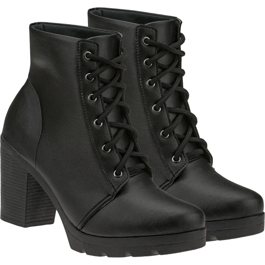 Bota Feminina Lumiss Conforto Coturno Cano Curto Salto Médio Grosso