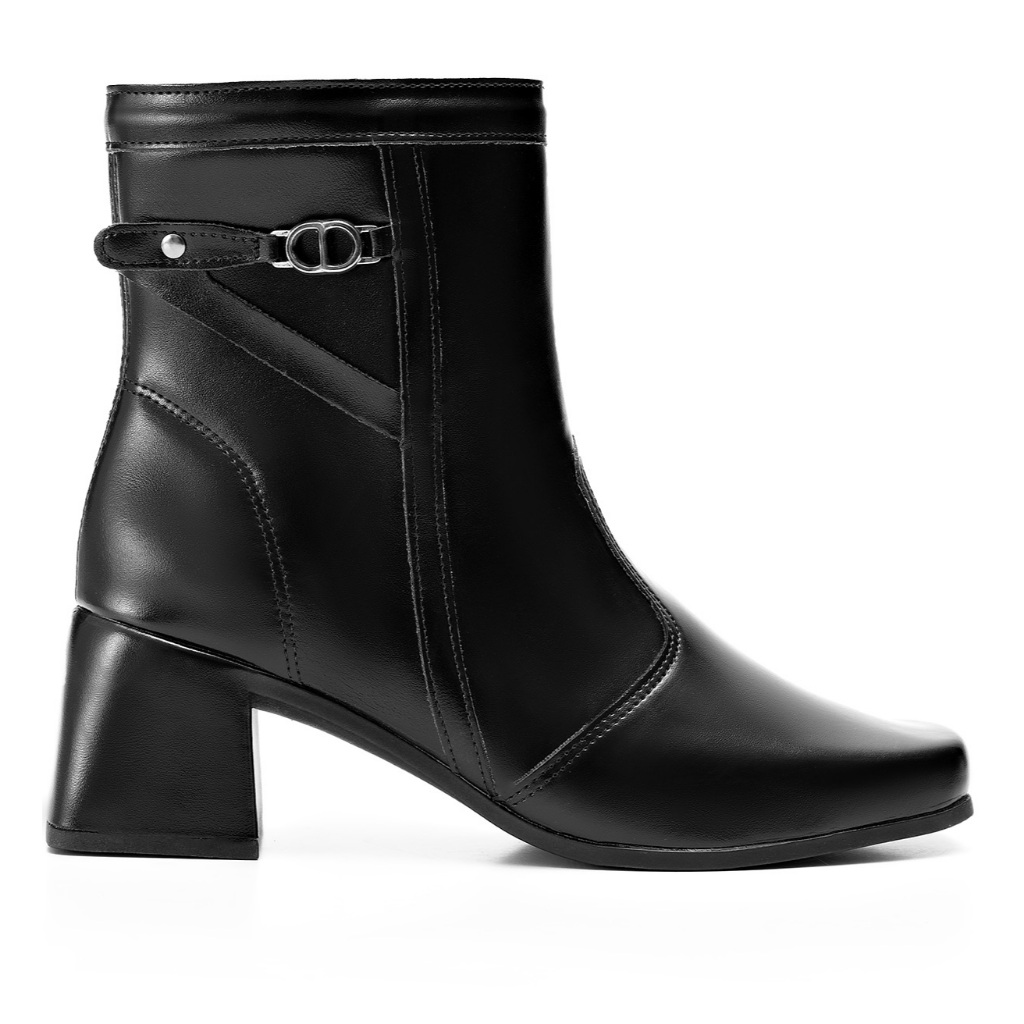Bota Feminina Lumiss Detalhe Metal Cano Curto Salto Bloco Baixo Preto