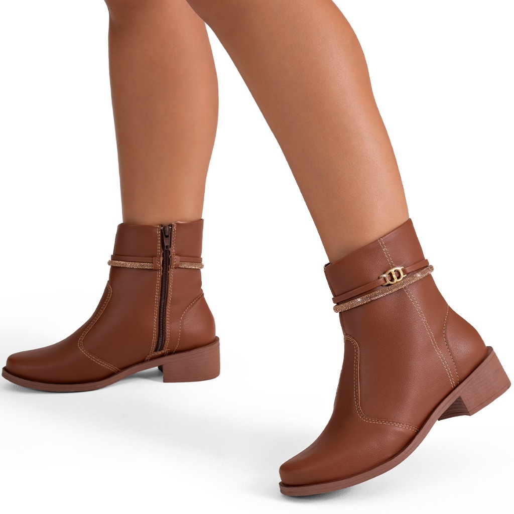 Essa bota de cano baixo une conforto e elegância com sua sola baixa e design versátil. A tira lateral de strass adiciona um toque de brilho, enquanto o enfeite com nossa logo garante exclusividade ao modelo. Perfeita para compor looks modernos com sofisticação! ..:::.. ESPECIFICAÇÕES DO PRODUTO ..:::.. *Material Externo - Napa Sintética *Material Interno - Helanca, Material Têxtil Super Confortável. *Solado - Emborrachado Anti-Derrapante, não faz barulho, não escorrega. *Altura do salto - 4,0 cm. *Palmilha - Confortável com aplique da logo. Medida aproximada dos pés para cada numeração: Tamanho 34 --- 23,0 cm Tamanho 35 --- 23,7 cm Tamanho 36 --- 24,2 cm Tamanho 37 --- 24,7 cm Tamanho 38 --- 25,4 cm Tamanho 39 --- 26,0 cm Tamanho 40 --- 26,7 cm SOBRE A LUMISS: Desde 2018, brilha no coração da Lumiss a inovação para calçados femininos. Nascida como Amorelle, a marca é fruto do sonho de um visionário que sempre acreditou na possibilidade de fabricar calçados que surpreendessem o mercado, tanto pela variedade quanto por seus preços acessíveis. Com muito trabalho em família, essa ideia foi levada adiante, fortalecendo uma marca que hoje é referência nacional em calçados femininos, com presença marcante nos marketplaces e mais de dois milhões de pares já entregues em todo o Brasil. Comprometida com cada cliente, a Lumiss oferece as maiores tendências do mundo da moda a partir de materiais que garantem conforto, qualidade, sofisticação e estilo aos pés da mulher brasileira, encantando até mesmo os perfis mais exigentes. Além disso, a empresa se preocupa em oferecer a melhor experiência de compra, com total segurança e praticidade. Lumiss é mais que uma marca. É uma ideia que chegou para mostrar que todas as mulheres podem brilhar e ser ainda mais lindas e confiantes com calçados que as valorizam em todos os aspectos.