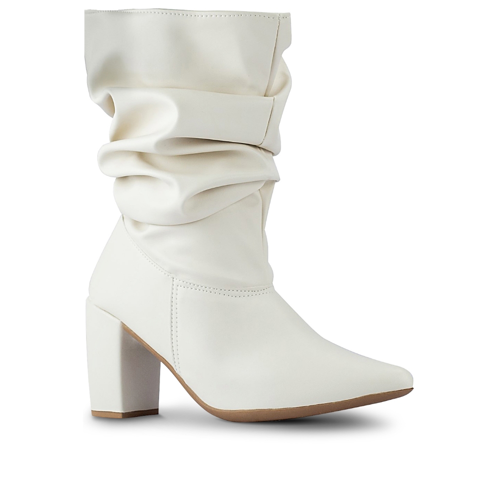 Bota Feminina Lumiss Slouchy Cano Médio Stretch Salto Alto Grosso Confortável Bico Fino Enrugada