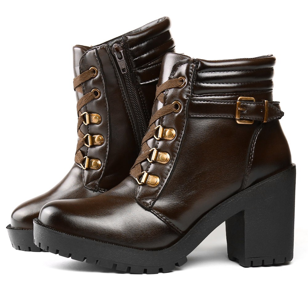 Bota Feminina SF Outlet Tratorada Salto grosso Off White - Preto - Café