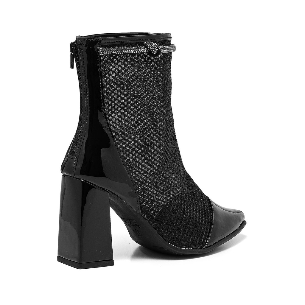 Bota Feminina Stessy Shoes Tela Cano Curto Bico Quadrado Salto Grosso Strass Moderno fashion