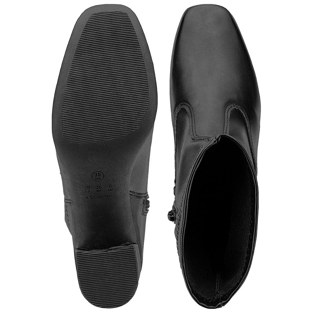 Bota Feminina Stretch Cano Médio Bico Quadrado Salto Grosso