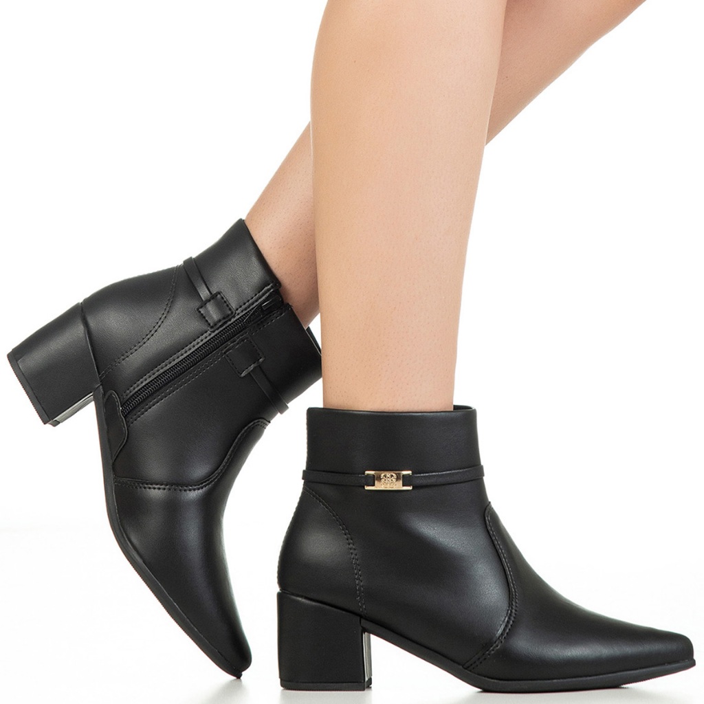 CALÇA O NÚMERO EXATO. Bota Salto Bloco Médio, Bico Fino Material Externo - Napa Sintética Detalhe Cano - Tira com metal. Forro - Cacharrel (tecido) Com espuma. Material Interno - Material Têxtil Confortável. Solado - Microgel Altura da Sola - 4,5 cm Altura do Cano – 12,5 cm Palmilha - Confortável, com espuma e com aplique da logo. A Bota bico fino da Gigil é perfeita para mulheres que buscam um calçado casual e com um toque de elegância aos looks do dia a dia. Seu bico fino e cano curto com detalhe em metal traz um toque a mais de sofisticação. O salto médio proporciona um caminhar seguro e confortável. Clássica e versátil é uma ótima opção para apostar. Sempre acompanhando as Tendências. Esteja certa que você vai adquirir um calçado para proporcionar conforto em todos os seus momentos. Para você que não abre mão de calçados estilosos, confortáveis e de muita qualidade! DICA: Além de ser uma opção atemporal, a bota bico fino ainda é uma ótima escolha para quem quer alongar as pernas, efeito causado pelo bico fino, afina e alonga a silhueta !!! CONSERVAÇÃO: * Para conservar o seu modelo novo e bonito por muito mais tempo é fundamental seguir algumas recomendações: - A limpeza deve ser feita com sabão neutro e pano úmido e não deve ficar de molho. Não usar nenhuma fonte de calor para secar. Guardar em local sem umidade e deixar descansar na sombra por 12 horas após o uso. - Não utilize Máquina de lavar e secar. - Independente do material do seu sapato, não esfregue com força ou passe esponjas grossas. - Caso alguma dessas indicações não forem cumpridas, isso poderá danificar os materiais, a cor e a textura do seu calçado. GiGiL - SEU ESTILO COM UM CLIQUE! Somos uma marca de moda, criativa e antenada. Nosso foco é criar calçados com qualidade e preço justo. Superar suas expectativas e oferecer praticidade de compra são nossos objetivos.