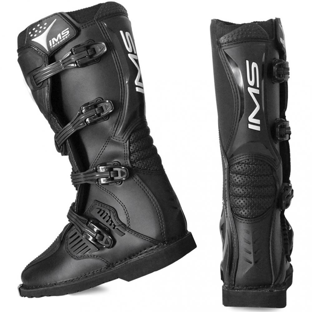 Bota IMS Pró Pilote com muita proteção e segurança com a Bota de Motocross IMS Pró. Confeccionada com materiais premium, a bota IMS para Motocross permite que sua pilotagem seja muito mais confortável para seus pés, além de garantir segurança contra os mais diversos impactos e atritos que possam ocorrer em quedas ou referentes aos atritos gerados peças movimentações durante a pilotagem. *Características das Botas IMS Pró - Interior com tecido leve e respirável - permite que mesmo em pilotagens prolongadas ou dias mais quentes a pele respire livremente com muito mais conforto - Fabricação com materiais premium - externamente em material sintético e placas emPU, oferece muito mais proteção contra os mais diversos impactos - Controle térmico e de umidade - impede superaquecimentos e realiza a absorção e a liberação do suor mais rapidamente - Fechamento prático - tiras em plástico e presilhas em alumínio dão praticidade e maior capacidade de ajustes - Biqueira metálica - minimiza os impactos frontais diretos, garantindo maior durabilidade - Solado costurado e reforçado - muito mais resistência e maior aderência às pedaleiras - Fecho de contato na parte superior - fechamento mais seguro e melhor ajuste junto às pernas - Tratamento anti microbiano - evita o mau cheiro e a proliferação de microrganismos - Peso seco aproximado (par): 3,050 Kg (Tamanho: 40 BRA). *Além da cor, pequenos detalhes e acabamentos podem não ficar evidentes nas fotos, por isso, as imagens são meramente ilustrativas.