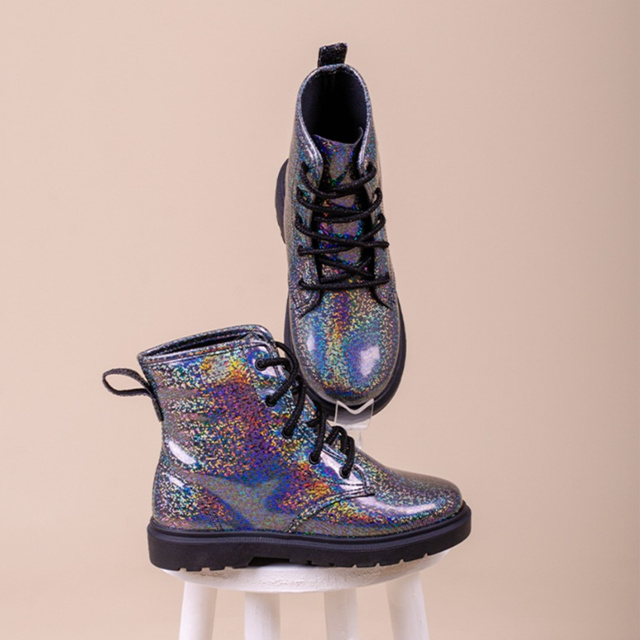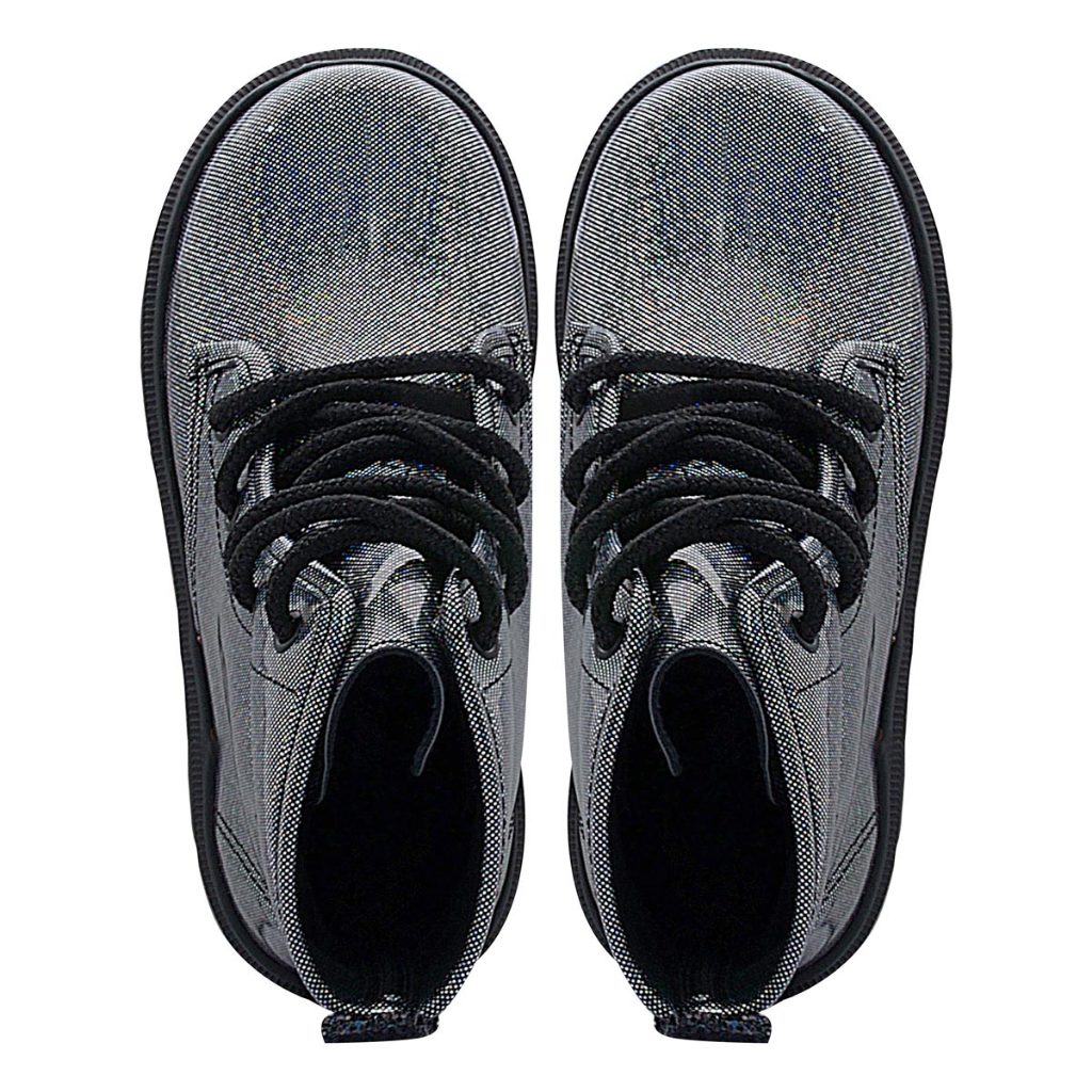 Bota Infantil Coturno Preta Com Brilho Fashion Cano Curto Com Cadarço Confortável