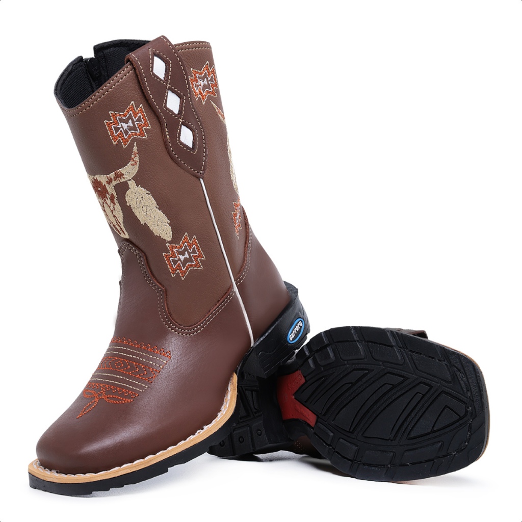 Bota Infantil Feminina Texana Country Com Zíper Bordada Sola Borracha