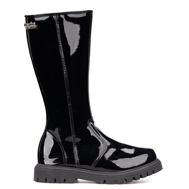 Bota Infantil Menina Fashion Cano Longo Galocha Tratorada Verniz