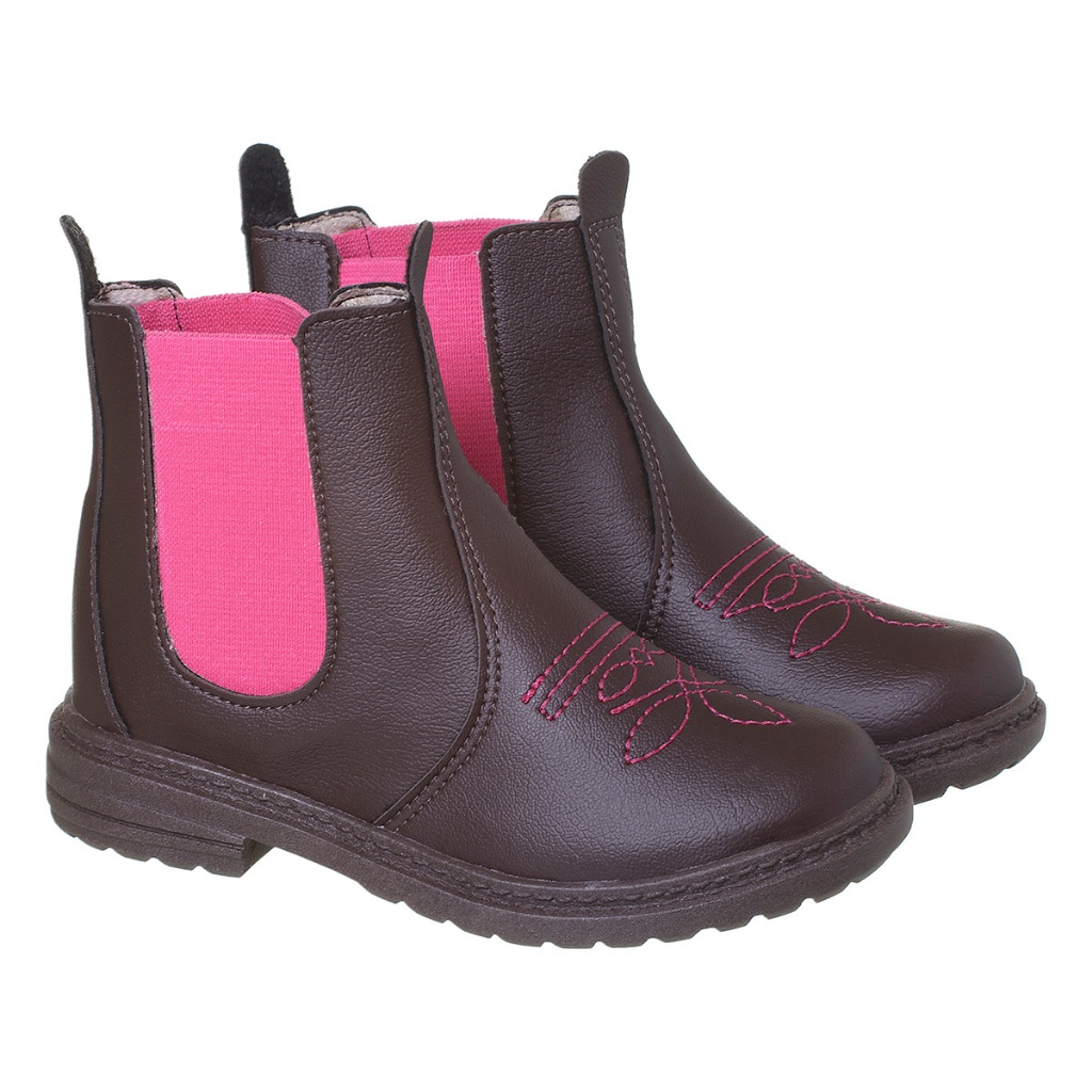 Estilo, conforto e um toque country para as pequenas boiadeiras! A Bota Jequinha Infantil Feminina Angipé Café e Pink é perfeita para as meninas que amam o universo sertanejo e querem arrasar no look! Seu design autêntico traz um lindo bordado detalhado, combinando o tom café clássico com detalhes pink que dão um charme especial. Com um modelo calce fácil, ela possui elástico lateral, garantindo praticidade na hora de vestir. O solado tratorado antiderrapante oferece mais segurança para brincar e se aventurar com conforto o dia todo. Seja no campo ou na cidade, essa bota é a escolha ideal para as pequenas boiadeiras com muito estilo! 🤎💗 Autenticidade e praticidade para qualquer ocasião! Características do KIT: 1 Par de Calçado 1 Ebook Características do produto: Marca: Angipé Material Interno: Têxtil Material Externo: Sintético Fecho: Calce fácil Palmilha: EVA Confort Solado: Borracha Altura do Salto: 3cm Guia de Tamanhos: Nº 20 – 14,2 CM Nº 21 - 14,6 CM Nº 22 – 15,0 CM Nº 23 – 15,9 CM Nº 24 – 16,7 CM Nº 25 – 17,2 CM Nº 26 – 18,2 CM Nº 27 – 18,7 CM