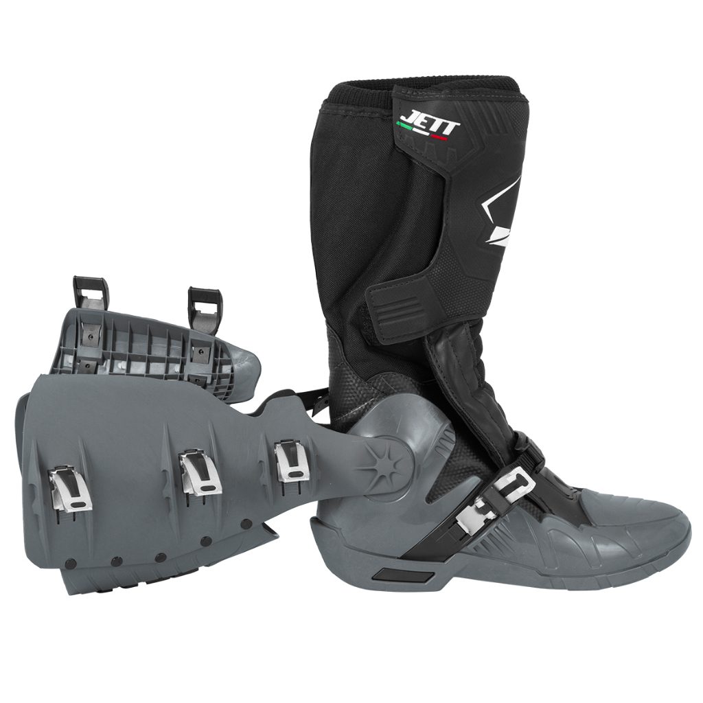 A bota motocross Jett Lite é fabricada com materiais exclusivos desenvolvidos pela própria marca Jett. Os materiais empregados na fabricação possuem vida útil muito mais longa, diferente das outras botas, dando ao piloto o máximo de apoio e proteção. Características: Sistema de apoio do tornozelo em poliuretano, não quebra; Sistema de haste substituível; Sistema de fecho altamente preciso, seguro e resistente; Fivelas e fechaduras são substituíveis sem o uso de ferramentas; Concha superior removível e intercambiável; Ampla abertura facilitando a utilização de joelheiras; Muito mais leves comparadas as demias de outras marcas; Tamanhos disponíveis: 39, 40, 41, 42, 43, 44 e 45; Marca: Jett. Dicas: Recomendamos para esse modelo: usar dois números a mais do seu tamanho, para um maior conforto. Exemplo: caso seu número seja o 39, recomendamos adquirir o tamanho 41. Lavar com sabão neutro, água, pano, esponja e escova plástica e deixe secar em local com temperatura ambiente e arejado. Jamais use produtos como solventes, agentes de limpeza, ou escovas de aço.