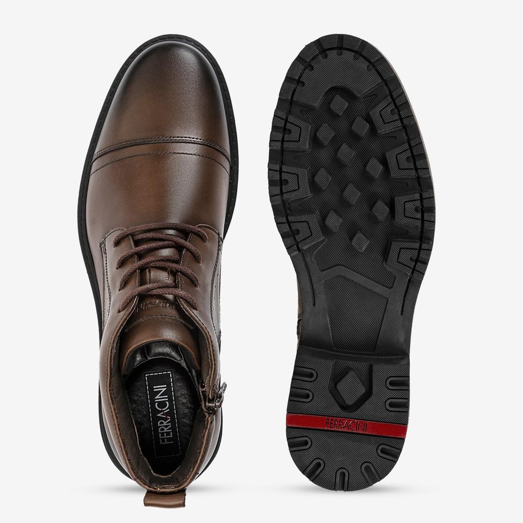 Bota Masculina Ferracini de Couro Atenas Marrom Tratorada e Solado de Borracha Confortável e Macia 9815-517D