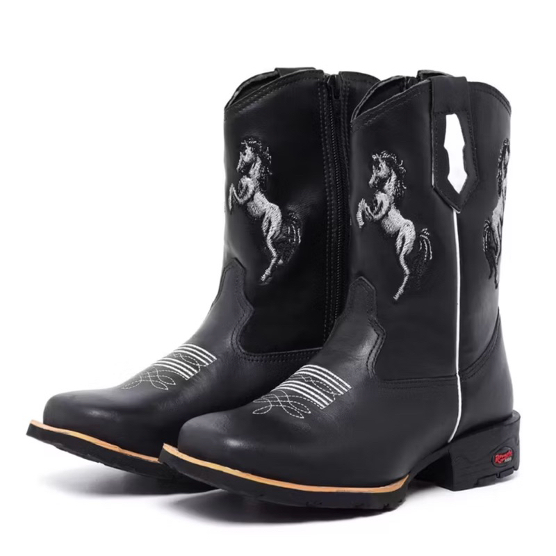 Bota Masculina Infantil Menino Bordada Cavalo Boi Bico Quadrado Texana Cowboy Country Estilosa Confortável