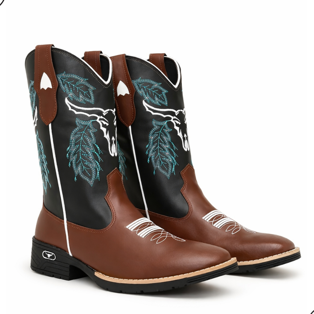 Bota Masculina Texana Cara Boi Bico Quadrado Estilo Country Solado Borracha