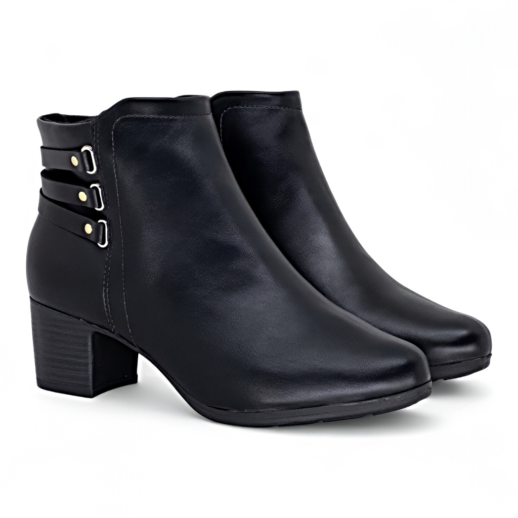 FORMA: Normal (Ver tabela de medidas) CABEDAL: Material Sintético de alta qualidade FORMATO DO BICO: Arredondado PALMILHA: Palmilha anatômica com tecnologia Ultracomfy FECHAMENTO: Zíper lateral SALTO: 5.5cm SOLADO: PVC Antiderrapante ENVIO: Na caixa do fabricante GARANTIA: Contra defeitos de fabricação - 30 dias A Bota Feminina Cano Baixo Modare Ultraconforto é perfeita para mulheres que valorizam o equilíbrio entre elegância, bem-estar e praticidade. Com um visual versátil e sofisticado, essa bota é ideal para compor produções estilosas em dias mais frios, seja para o trabalho, momentos casuais ou passeios de fim de semana. Moderna e funcional, ela oferece conforto prolongado sem deixar de lado o charme que transforma qualquer produção. Confeccionada em material sintético de alta qualidade, essa bota se destaca pela durabilidade, resistência e excelente acabamento. O material imita o aspecto do couro com fidelidade, trazendo sofisticação e praticidade à rotina. Sua estrutura firme garante um ajuste confortável aos pés, enquanto a flexibilidade do material proporciona liberdade de movimento para o uso diário. O design clássico e atemporal de cano curto valoriza produções elegantes e minimalistas, sendo uma escolha certeira para diversas combinações no guarda-roupa feminino. O toque de estilo fica por conta das tiras com detalhe metálico, que adicionam um charme discreto e moderno ao visual. O bico arredondado complementa o estilo tradicional com uma pegada mais confortável e casual, ideal para quem busca beleza aliada à funcionalidade. Pensada para facilitar o dia a dia, a bota conta com fechamento por zíper lateral interno, que proporciona um calce prático e ágil. O formato de cano curto permite mais liberdade ao tornozelo, além de favorecer o uso com diferentes peças, como calças, vestidos e saias. O caimento é ajustado, conferindo um visual elegante e discreto, sem comprometer o conforto. Por dentro, a bota entrega uma experiência única de aconchego. Seu interior é totalmente forrado e acolchoado com material têxtil, garantindo conforto térmico e suavidade no contato com a pele. A palmilha anatômica com tecnologia Ultracomfy é o grande diferencial deste modelo, oferecendo um calce incrivelmente macio, com excelente absorção de impacto. Ela promove amortecimento e bem-estar duradouro, ideal para quem passa longas horas em pé ou caminhando. O modelo conta com um salto do tipo bloco de 5,5 cm de altura, que oferece um visual moderno, alonga a silhueta e garante maior estabilidade ao caminhar. Esse tipo de salto distribui melhor o peso do corpo, evitando desconfortos e tornando a bota uma ótima opção para o dia a dia, sem comprometer a elegância. TABELA DE MEDIDAS Tamanho 34 - 23.5cm Tamanho 35 - 24.1cm Tamanho 36 - 24.6cm Tamanho 37 - 25.8cm Tamanho 38 - 27.1cm Tamanho 39 - 27.7cm